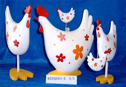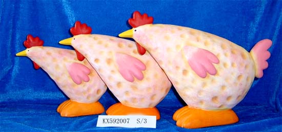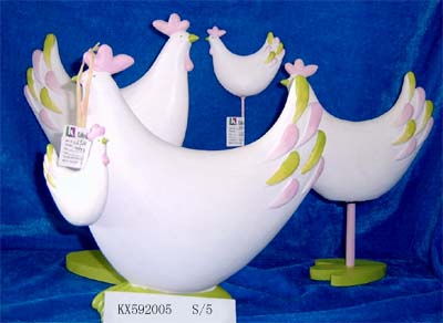 Ceramic Easter rooster and hen figurines